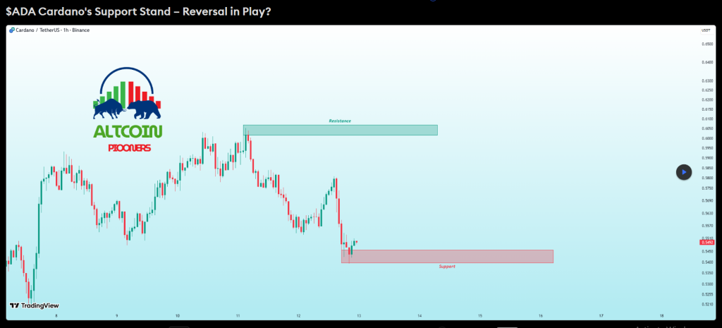 TradingView analyst “AltcoinPiooners” has highlighted recent price action and a possible shift in market pressure. Reports show ADA tested support at $0.53 after hitting $0.60 on November 11 and falling the next day.