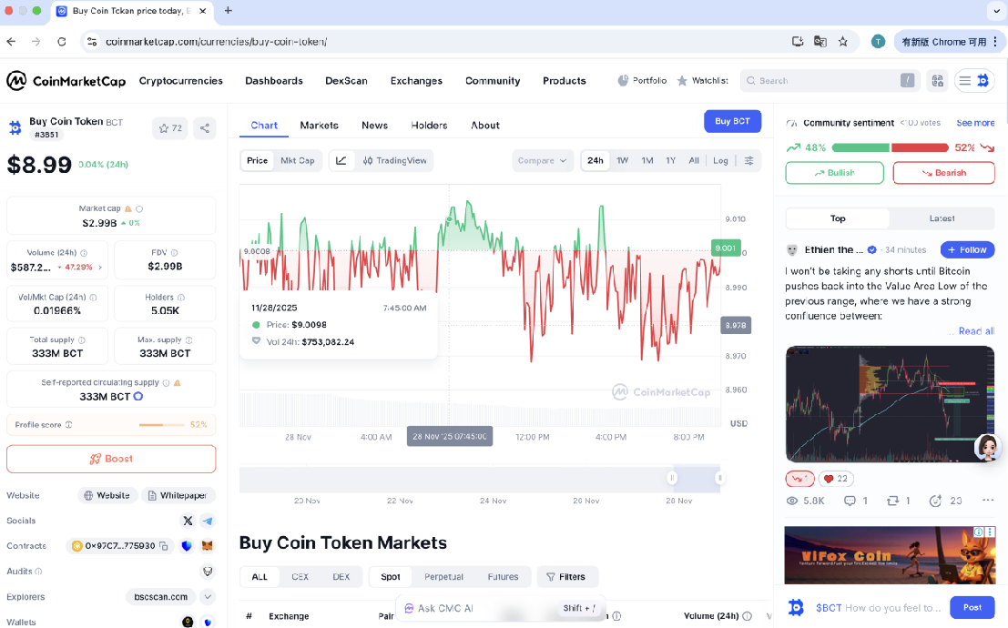 现在打开 CMC 官网搜索BCT,你能清晰看到全维度真实数据: