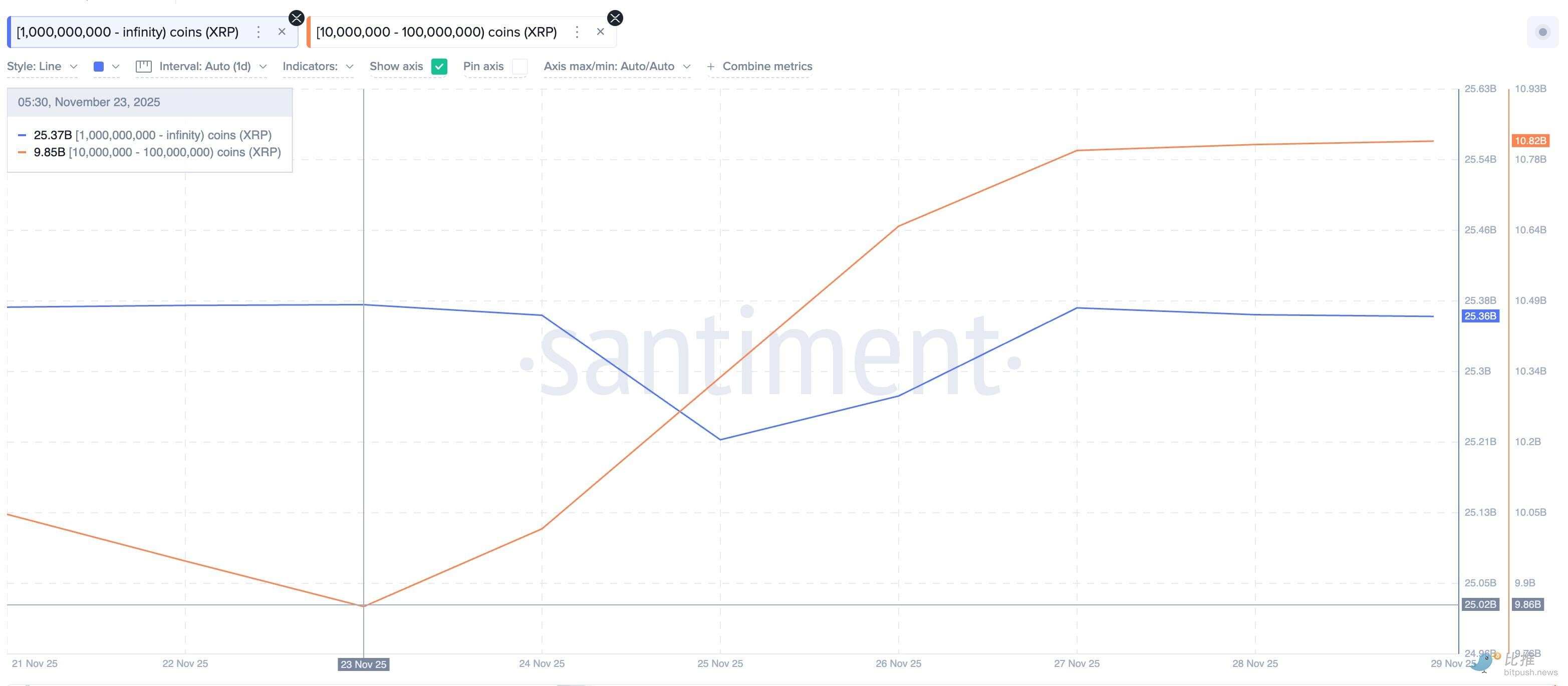 • 持有 1 亿-10 亿枚 XRP 的地址净增加 9.7 亿枚
