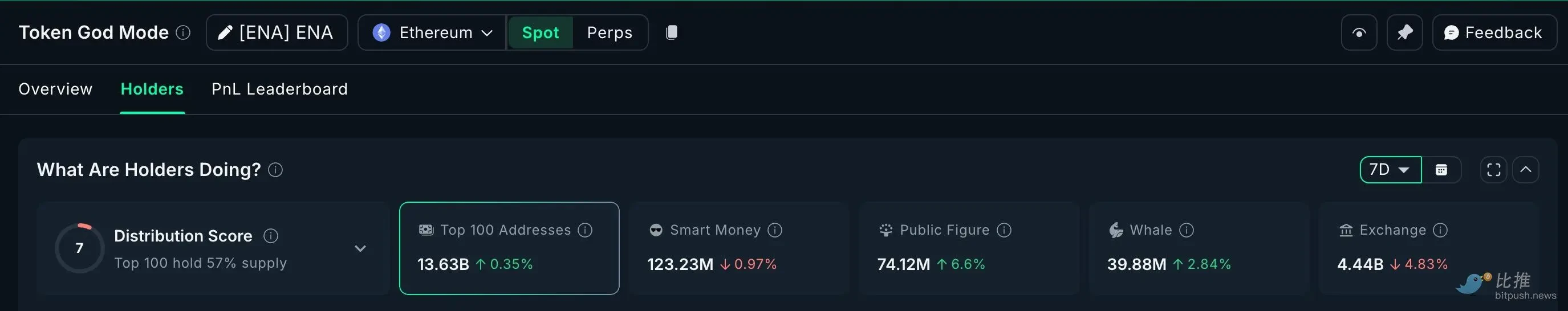 ENA(Ethena):过去 7 天巨鲸持仓增长 2.84%,顶级 100 地址增持超 5000 万枚