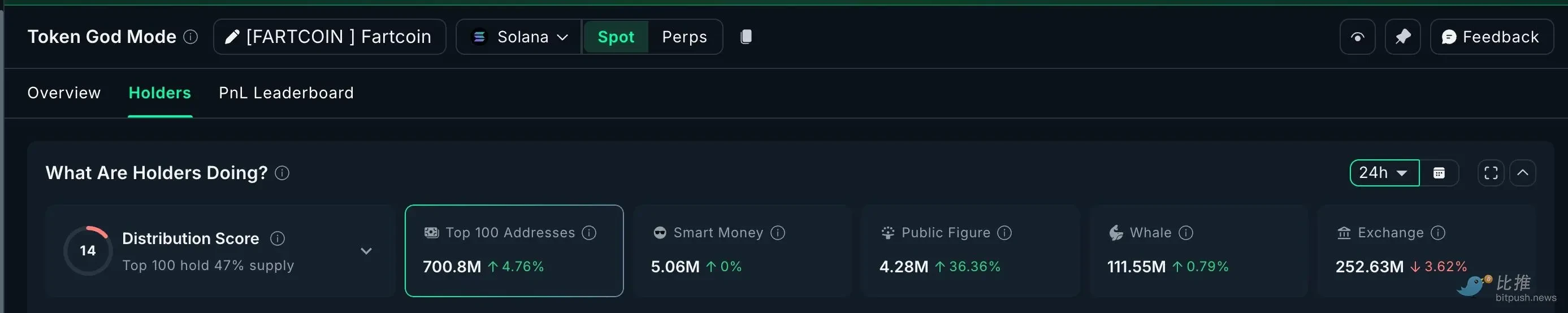 FARTCOIN:单个地址 24 小时内扫货 3243 万枚(1070 万美元)