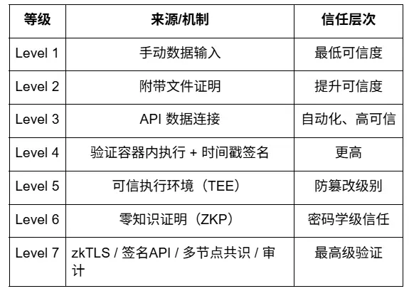 “可验证性不是二元的,而是连续谱”。DVN 依据数据来源可信度分层: