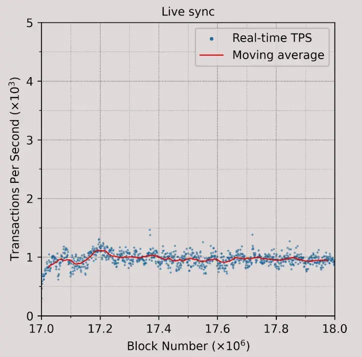 MegaETH 的性能突破不仅仅来自硬件堆叠,而是依赖于对区块链底层架构的深度优化。例如,在实验中,即使使用配备 512GB 内存 的高端服务器, Reth(以太坊执行客户端) 在实时同步(live sync)以太坊最新区块时,也只能实现约 1000 TPS(相当于 100 MGas/s) 。性能瓶颈主要来自 Merkle Patricia Trie(MPT)更新的开销 ——这一部分的计算成本几乎是交易执行的 10 倍