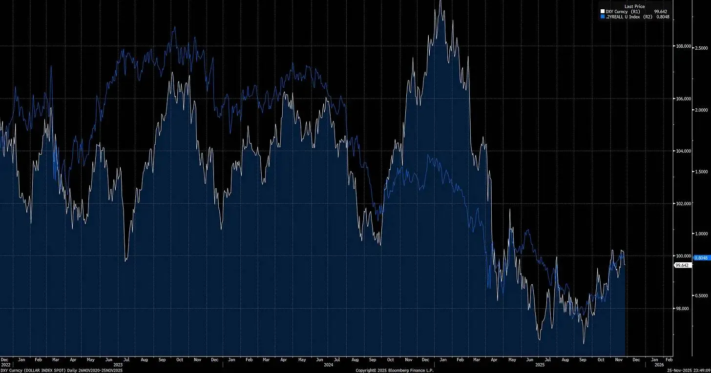 市场正以一种近乎梦游的状态步入一个几乎无人定价的结构性风险:一个人为操控的美元贬值,这将把投资者认为的顺风因素转变为未来一年主要的波动来源。围绕弱势美元的自满情绪,就像2008年之前围绕抵押贷款的自满情绪一样,而这正是为什么一次刻意的美元贬值会对风险资产造成比投资者预期更大的冲击。