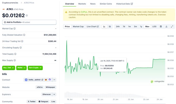• 2025 年 7 月,A7 官方 Telegram 频道直接宣布向 A7A5 DEX 注入 1 亿美元等值 USDT 流动性,以应对市场对“ A7A5 ↔ USDT 最优价”的需求。