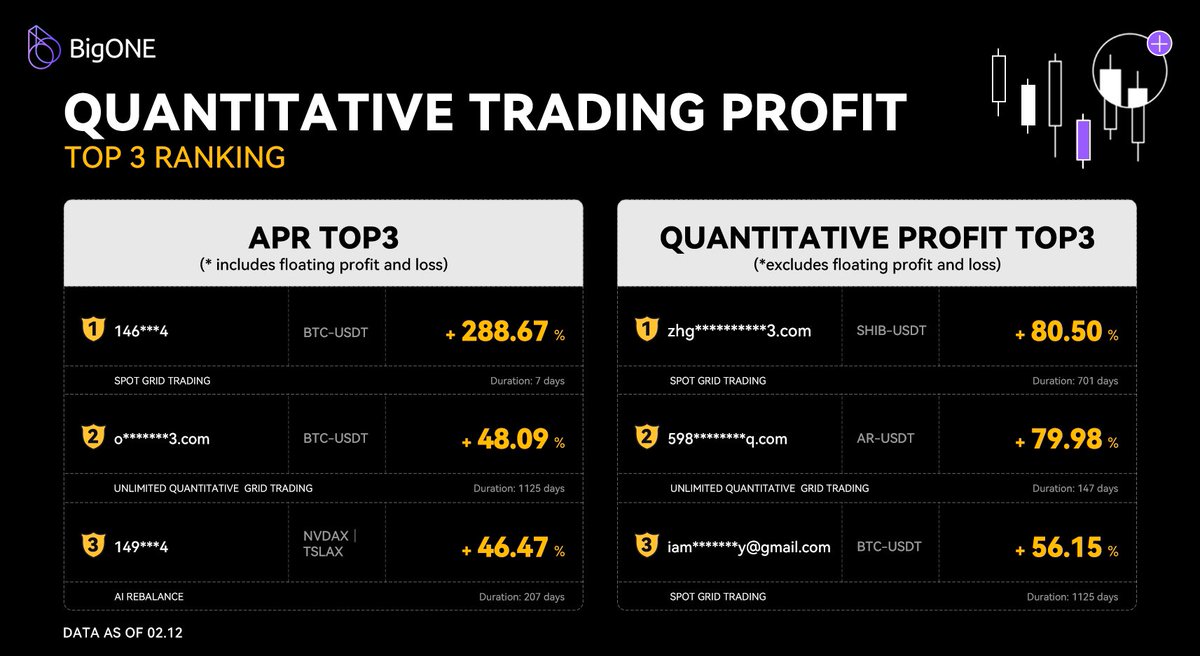 🏆 Check out today's #BigONE's Quantitative Trading Leaderboard! 🚀 Learn from the best, refine your strategy, and unlock your trading potential. 📈