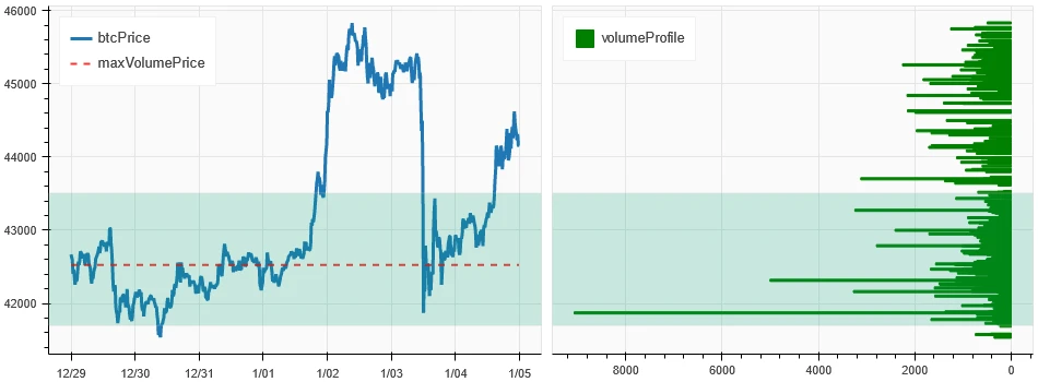 上图是 BTC 过去一周的密集成交区分布图