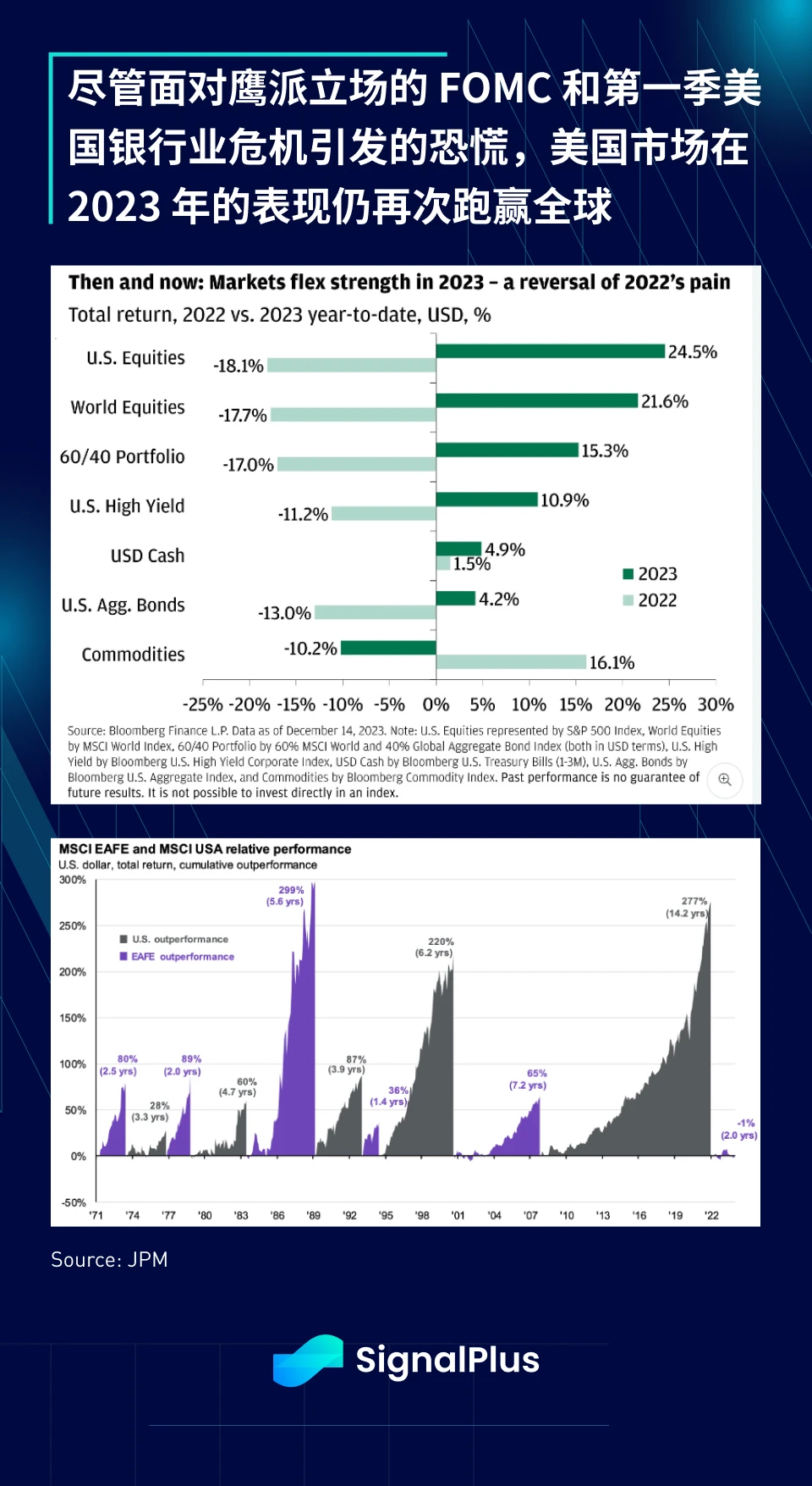 传统的 60/40 投资组合在 2022 年创下了新的亏损记录,投资者在 2023 年开始时理所当然地表现出风险趋避的态度,且普遍对宏观前景抱持负面看法,年初风险敞口偏低,整体上缺乏积极的投资氛围。