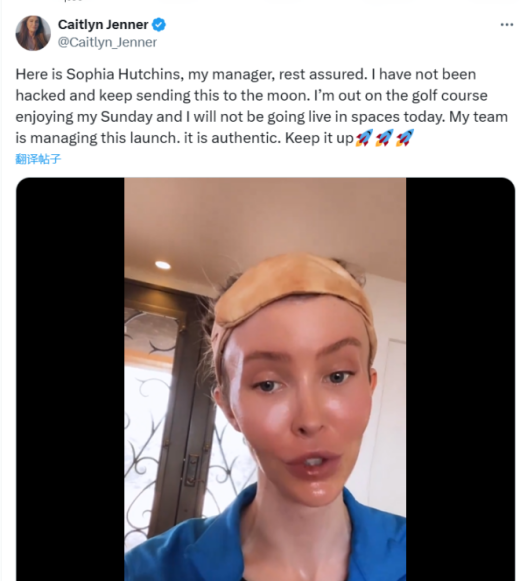 Caitlyn在自己的insgram 账号上再度更新账号,发布了一条快拍,称“一小时 700 万美元,团队为 Caitlyn Jenner 和 Sophia Hutchins(Jenner 的经纪人)”。Sophia也在后续转发了该快拍, 随后,Caitlyn更是在X平台开始和大家互动,强调自己并未被盗号。