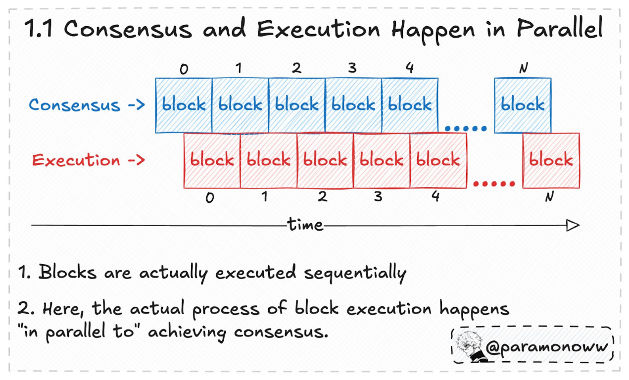 正如之前提到的,区块执行过程与共识是并行发生的,尽管区块本身实际上是按顺序执行的。您可能会想这是否构成真正的并行执行。