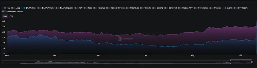 从产品的利率等方面来看,Aave的借贷利率都不算高,但有着更雄厚的深度,这也使其获得了不少大户的偏爱。6月10日,特朗普家族支持的World Liberty Financial从Aave借入了价值 750万美元的USDT。总体来看,2025年上半年,Aave在基本面(TVL等数据)和市场表现方面都实现了上涨趋势,仍是DeFi协议发展的标准模板。
