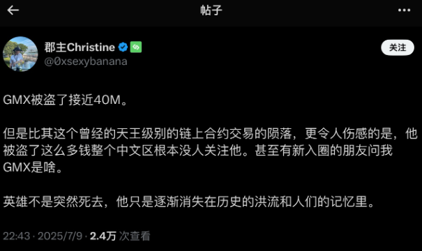 在記憶短暫、注意力稀缺的加密市場,無人關注才是是最大的懲罰。這場偷竊,奪走的的不僅是 4200 萬美元,還有 GMX 曾經的榮光。