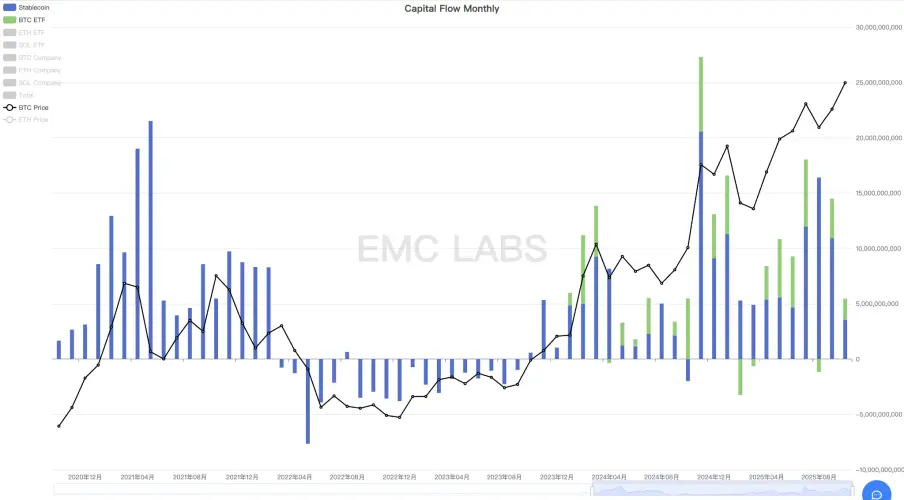 這一段市場動力來自降息和川普加密友好政策預期所帶來的投機行為,加密市場在這一階段獲得創紀錄的資金流入。