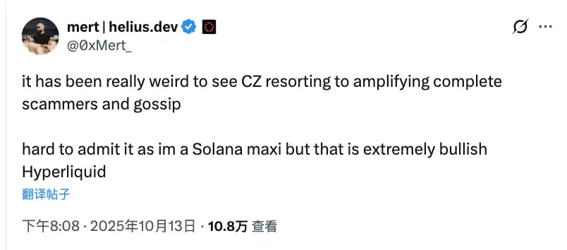 这场争论很快引发了站队。DeFi 老炮 Andre Cronje 站台 Binance,而 Solana 社区核心成员、Helius Labs CEO Mert 则选择支持 Hyperliquid。整个行业因此分裂成两个阵营。