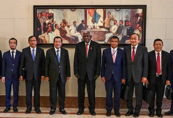 而到了2020年,太子集团的地产雏形已然基本建立,陈志的政坛影响力也加速在柬埔寨渗透。同年,陈志在柬埔寨被授予公爵称号,担任洪森、前国民议会主席韩桑林(Heng Samrin)和前内政部长韶肯的个人顾问。2022年,陈志与洪森共同出席古巴国民议会,还曾代表柬国政府向邻国老挝提供援助。到了2024年,陈志更是被西哈莫尼国王直接任命为洪森亲王顾问,从政坛的边缘向中心不断迈进。