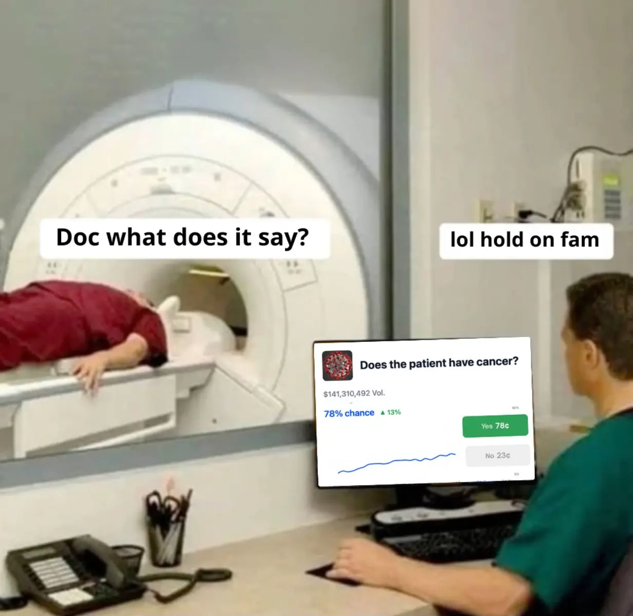 网友制作的meme图,表示医生通过 Polymarket 来判断病人是否患癌