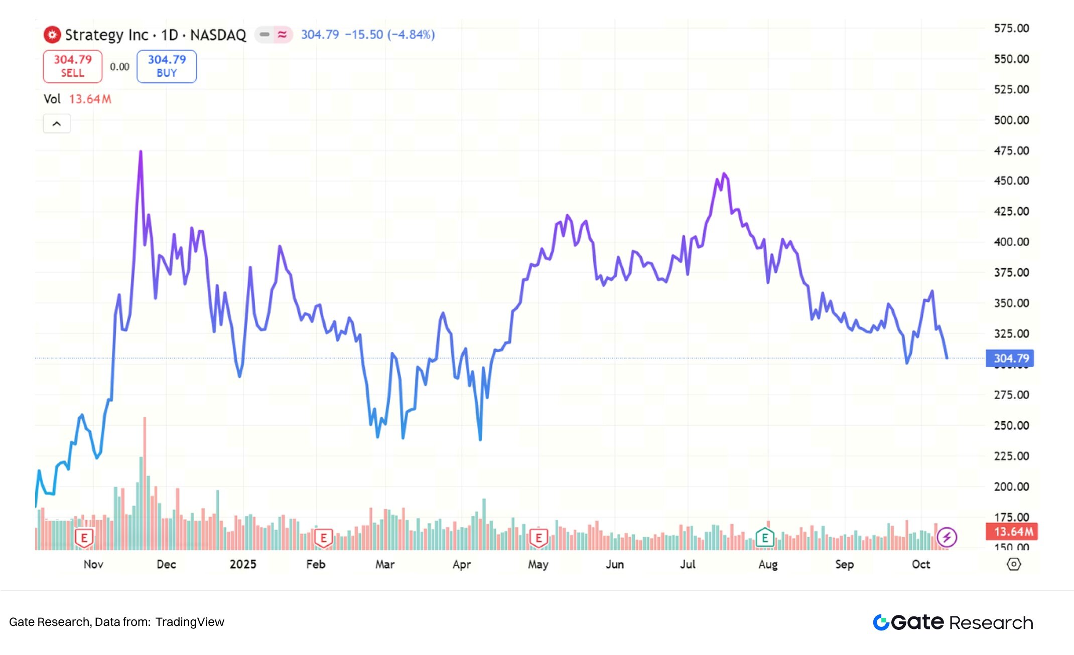 然而,进入 2025 年,市场开始重新审视 DAT 模式的可持续性。虽然市场有 Strategy 这支一度从边缘软件公司跃升为纳斯达克市值前列的明星股,但是自 2024 年底股价新高之后,Strategy 所创造的股价神话似乎不再上演,市场开始诟病 DAT 策略仅是牛市中的放大镜,而熊市中“每股含币量”将变得一文不值。同时,Michael Saylor 对比特币的信仰也同时受到了争议——为了维持每股含币量而拒绝变现,是否真能符合股东利益?与此同时,越来越多企业开始复制 Strategy 的模式,DAT 赛道迅速拥挤,使得原本依赖稀缺性与叙事张力支撑的“市值放大效应”逐步削弱。换言之,当 DAT 不再稀缺,其“资产驱动 + 估值溢价”模型的边际效应正在递减。