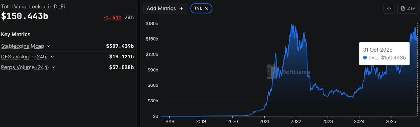 根据DefiLlama最新数据,全球DeFi TVL已突破1500亿美元,但增长率放缓至15%,远低于2020年的爆炸式扩张。