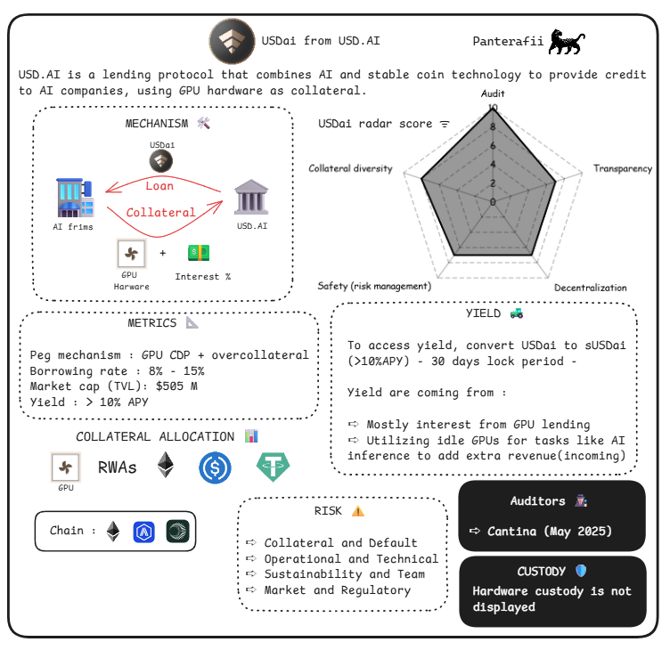 具体风险 :USDA 的固定借贷利率(8%)和仅支持 BTC 的 CDP 模型(收益来源于超过 5% 的年化收益率)使其暴露于 BTC 价格波动的风险,与多元化抵押品不同,其未提及超额抵押缓冲机制。