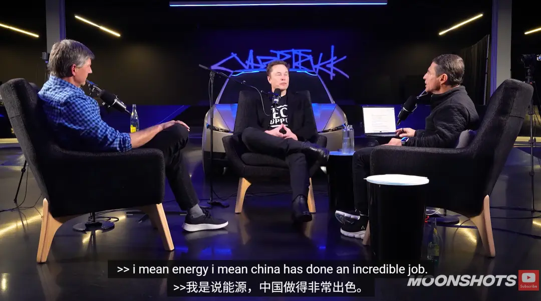 2026年中国的发电量将达到美国的3倍。中国去年新增了500太瓦时电量,其中70%来自太阳能。马斯克忍不住吐槽:“他们好像听了我说的每一句话,然后马上就付诸行动。”