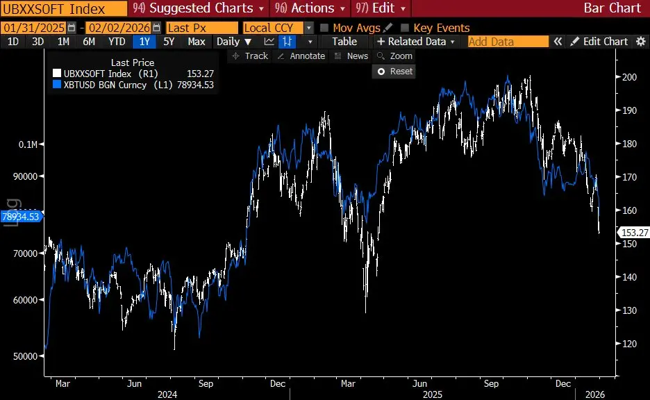 这就是影响 SaaS 和 BTC 的原因…… 这两者都是现存久期最长的资产,都因为流动性暂时撤出而被打了折扣。 黄金的上涨本质上吸走了本该流入 BTC 和 SaaS 的所有边际流动性。没有足够的流动性来支撑所有这些资产,所以风险最高的资产受到了打击。