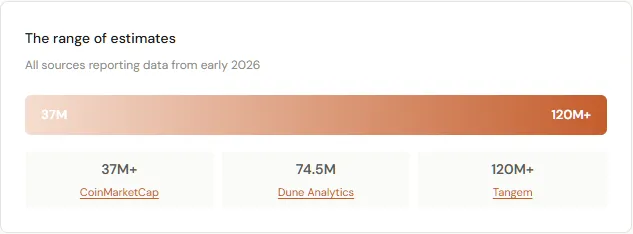• Tangem:引用2026年1月链上数据,主要网络上超过1.2亿