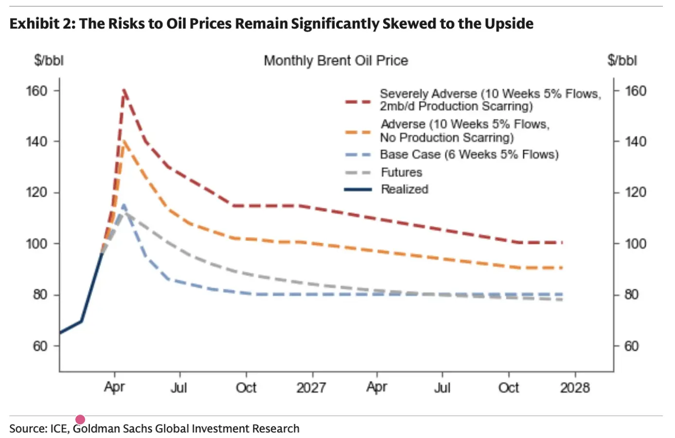 对于高盛而言,结论很直接:冲突持续的时间越长,高油价维持的时间也就越久。
