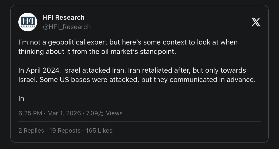 编者按:本文认为,真正驱动油价的,不只是冲突是否结束,而是「何时跨过临界点」。