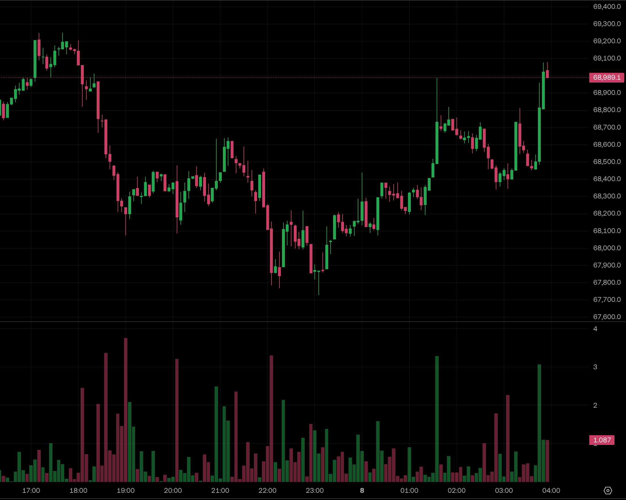 截至台北時間 4 月 8 日凌晨 4 時,比特幣(BTC)價格展現強勁動能,短線一舉突破 69,000 美元大關;第二大加密貨幣以太坊(ETH)也同步發力,順利衝上 2,100 美元。