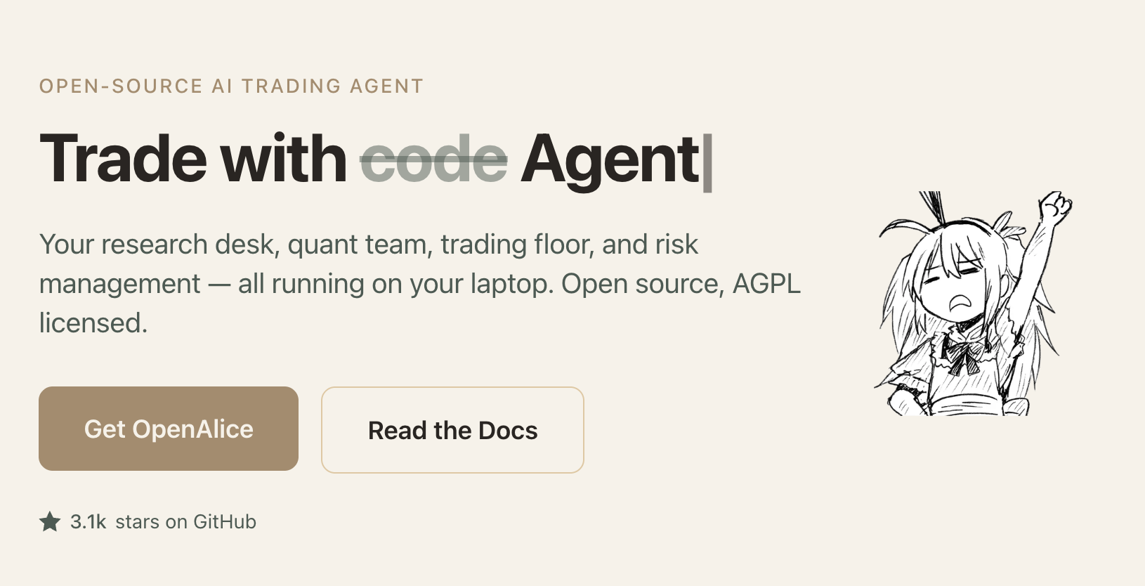 OpenAlice 是一個完全開源、跑在本地的 AI 交易代理引擎,整合市場研究、多資產下單、風控護盾,號稱「一人制華爾街」——3100 多個 GitHub star,資料完全不出本地。